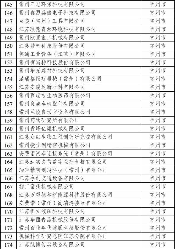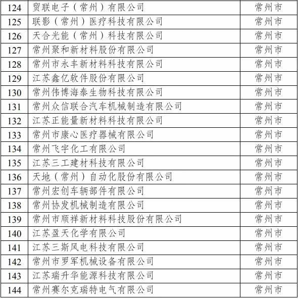 常州入選企業(yè)名單